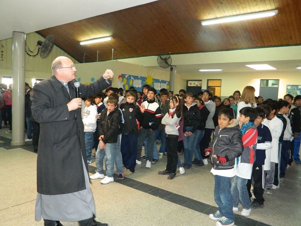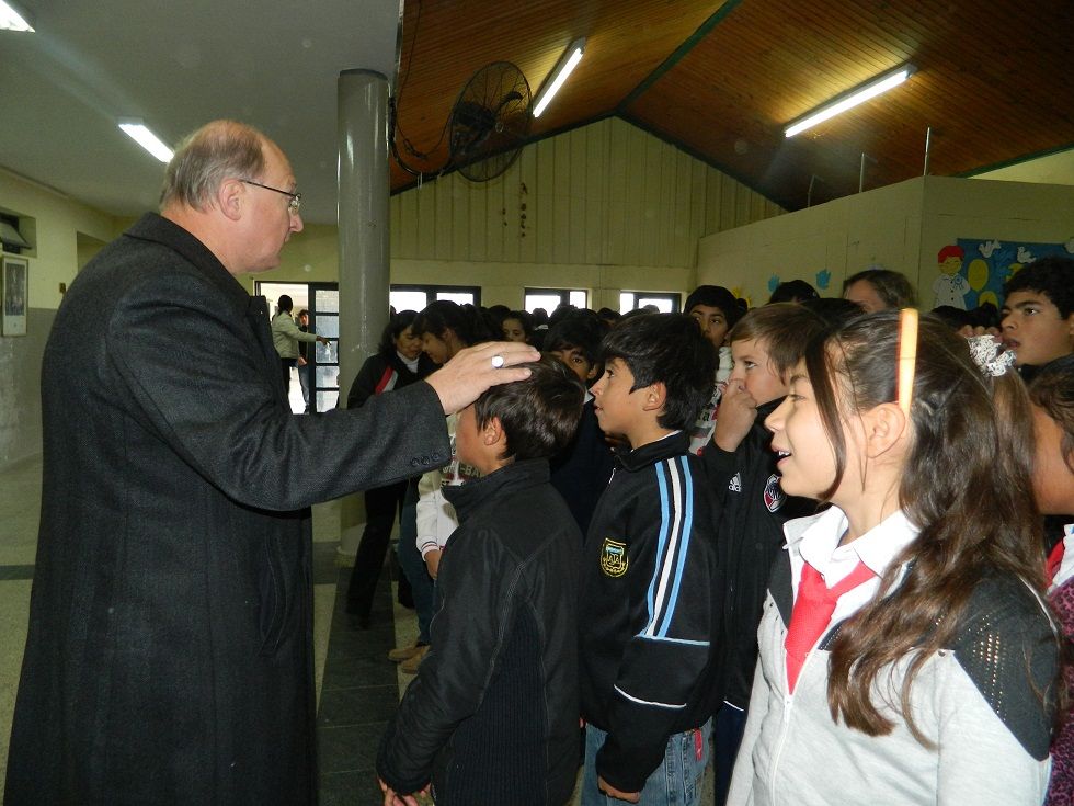 niños le dieron un cálido recibimiento junto a los docentes y padres. El Obispo