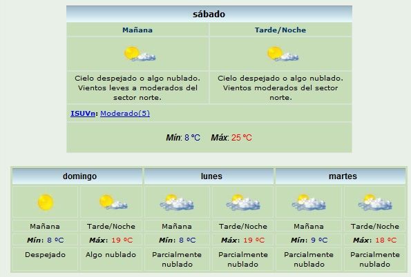 Si bien las mañana se presentan frías con temperaturas mínimas inferiores a los 10°, con el correr de las horas el sol va haciendo lo suyo y de a poco comienza a calentar la jornada. Según el Servicio Meteorológico Nacional, hoy la máxima podría llegar a los 25°.