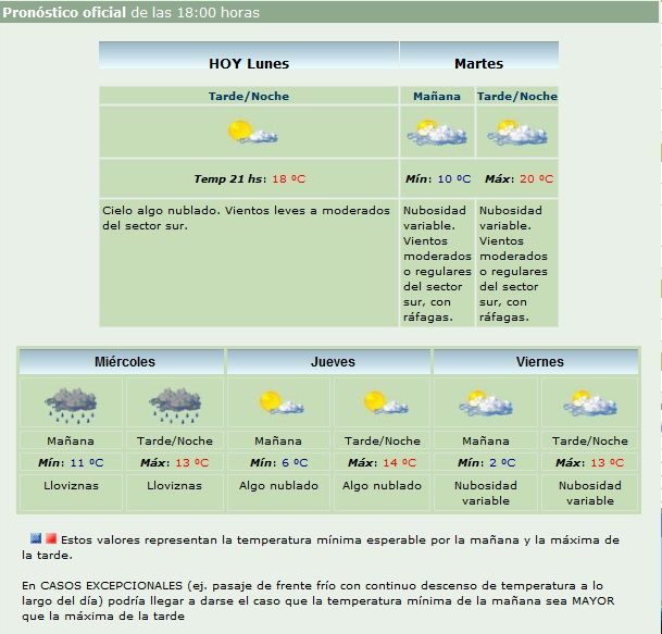 El frío está a la vuelta de la esquina. Mañana comenzará a desmejorar y el miércoles ya se sentirá un brusco descenso de la temperatura. La lluvia también dirá presente. El viernes, la máxima sería de 13° y la mínima de tan sólo 2°. Vea el pronóstico extendido del Servicio Meteorológico Nacional.
