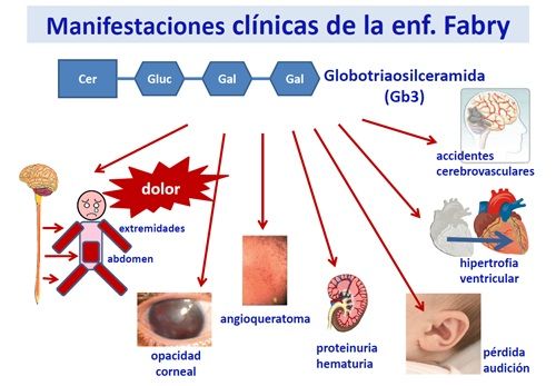 técnicamente denominada GL3, en los lisosomas de las células (depósitos
