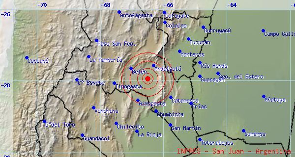 con una profundidad de 185 Km. el epicentro se registra en el Oeste provincial.