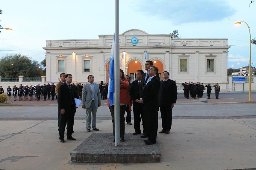 A partir de las 8 de la mañana iniciaron las actividades con el izamiento de la Bandera Nacional en la Plaza 25 de Agosto, luego el jefe comunal junto a su equipo, se trasladó al Teatro del Sur para compartir el tradicional chocolate con bollitos junto a funcionarios, docentes y miembros de distintas instituciones.