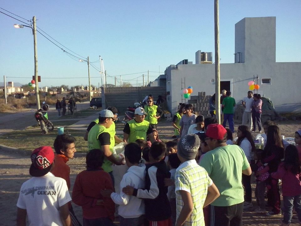 con los niños de Las Tejas, del barrio San Cayetano (San Isidro), Las Flores