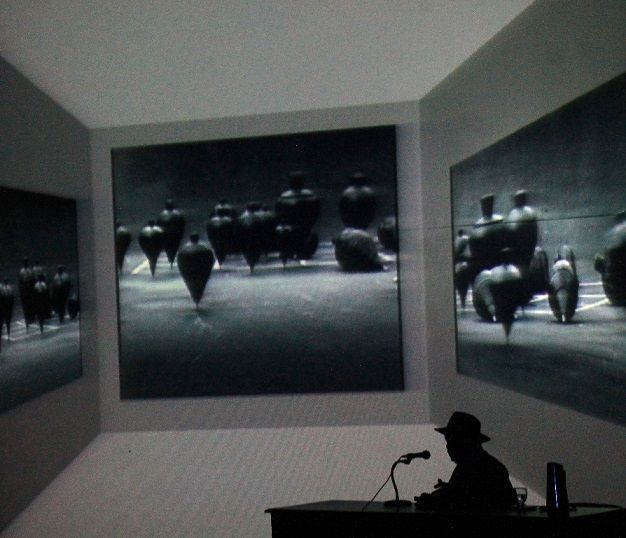 En la presentación de hoy exhibió su trabajo "Trompos”, una trilogía que nace a partir del atentado del 11 de septiembre. Las realizaciones están filmadas de manera monocromática, con enfoque en contrapicada.