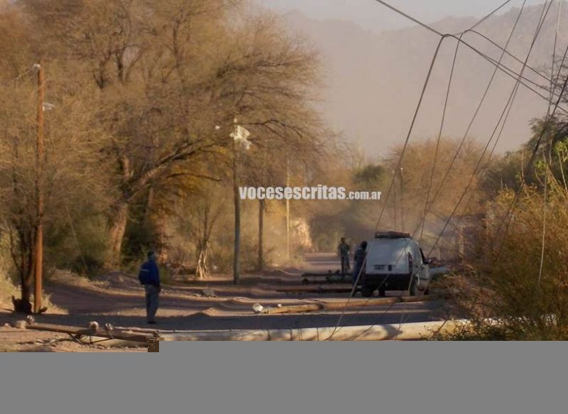Las fuertes ráfagas produjeron caídas de postes del alumbrado público en algunos sectores de la ciudad, con la consecuente interrupción del suministro de energía y agua potable en los barrios.