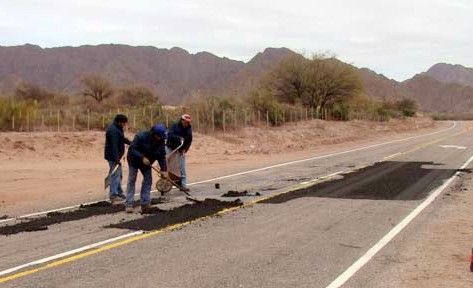 Ruta Provincial Nº 46: Transitable con precaución en el tramo de Pajonal - Siján, personal vial realizando repavimentación.