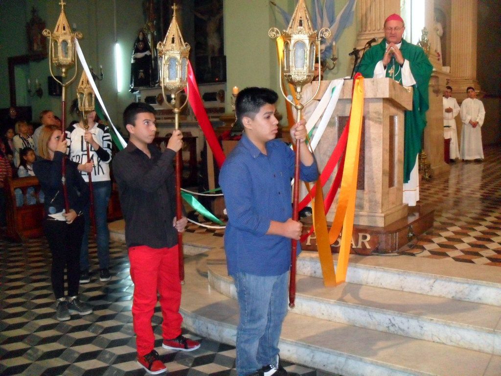En el ministerio del lectorado participaron una niña de un colegio confesional y un adulto, en tanto que los dones eucarísticos fueron llevados al altar por dos niñitas de la catequesis. Tuvieron a su cargo la animación de la misa, un joven funcionario de Educación con su hijo adolescente.