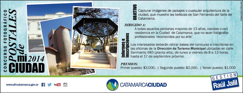 El concurso "Postales de Mi Ciudad”, está destinado a vecinos de la ciudad mayores de 13 años que no sean fotógrafos profesionales ni vivan de este arte. Se estableció que los ganadores obtengan: $3000 para el primer puesto, $2000 para el segundo y $1000 para el tercero.