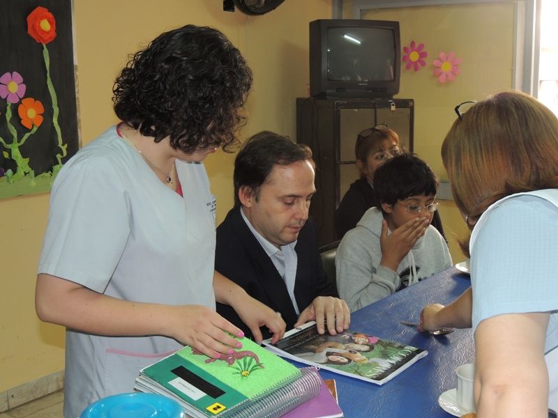 los sanitarios y dialogó sobre trabajar en conjunto en torno a libros de textos