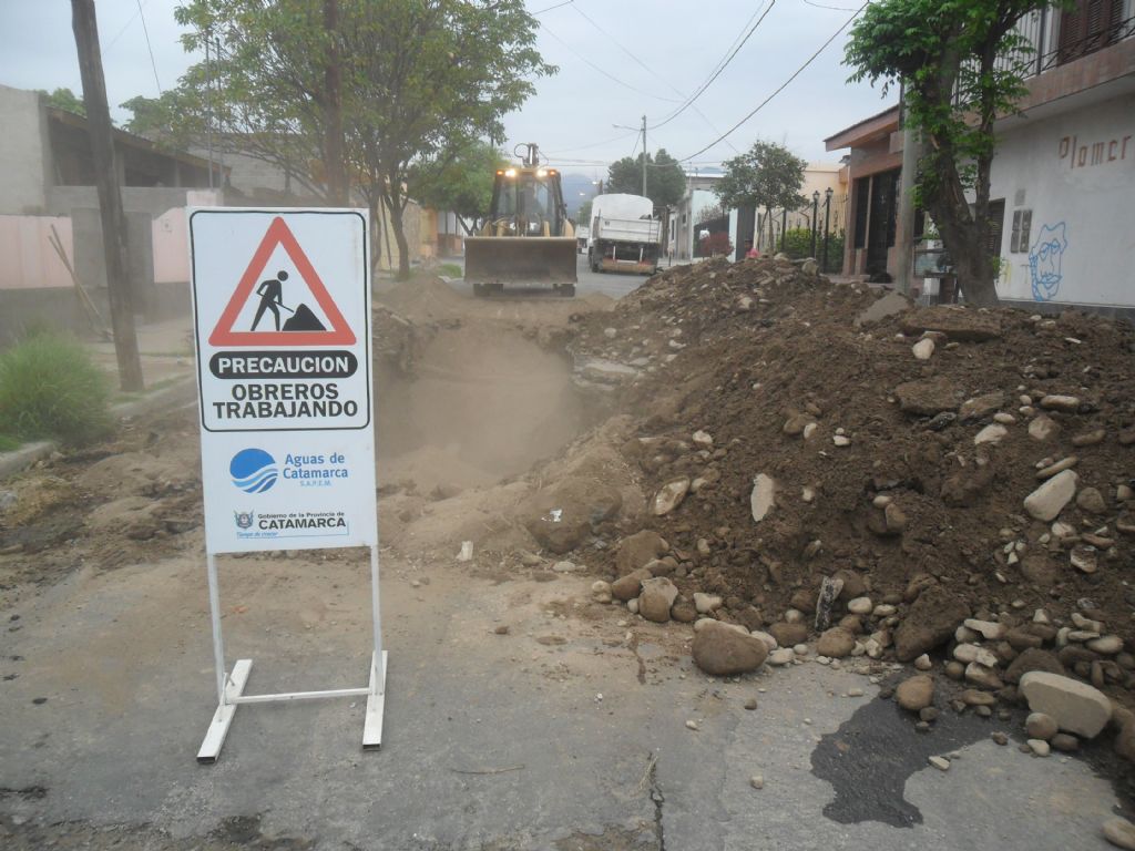Aguas de Catamarca se encuentra trabajando para reparar distintas roturas de emergencia para dejar cuanto antes habilitado el servicio de agua potable en distintos barrios de la Capital, de cañería de 200 mm en la esquina de Mons Damico y Pedro Acuña; Latzina esquina Mendoza de 75mm.