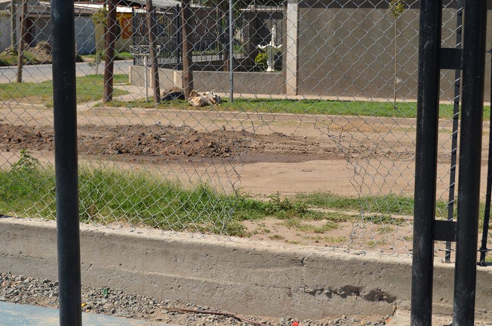 puerta de ingreso a la misma y uno de los aros de basquetbol. Además dañaron