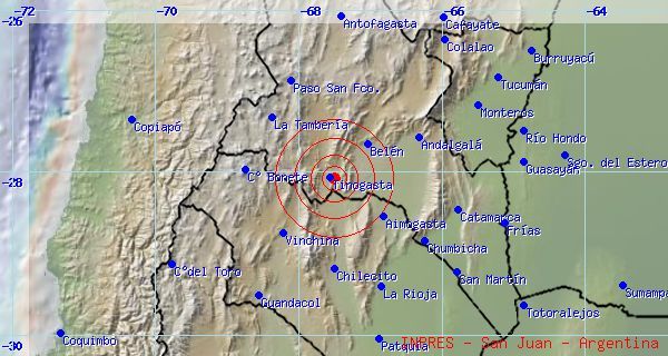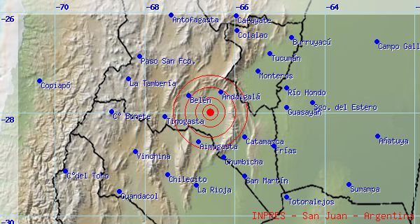 con epicentro en el Oeste provincial, al sureste de Belén, con una profundidad