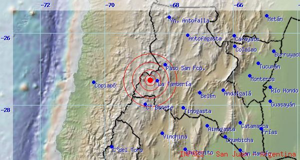 con epicentro al Oeste provincial, casi al límite con Chile, con una