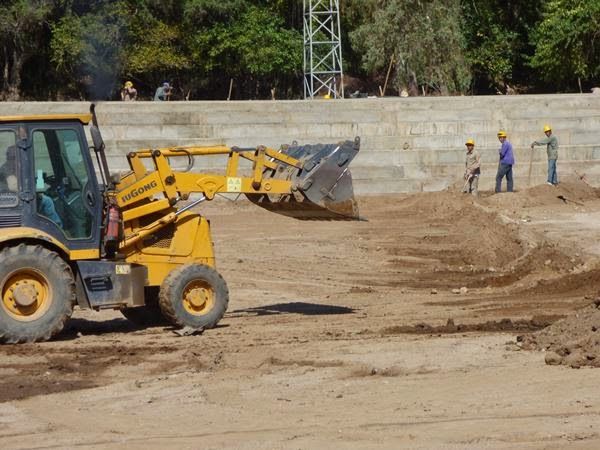 En el predio se puede observar que las gradas están finalizadas como así también el baño de mujeres, y la instalación del cableado subterráneo.