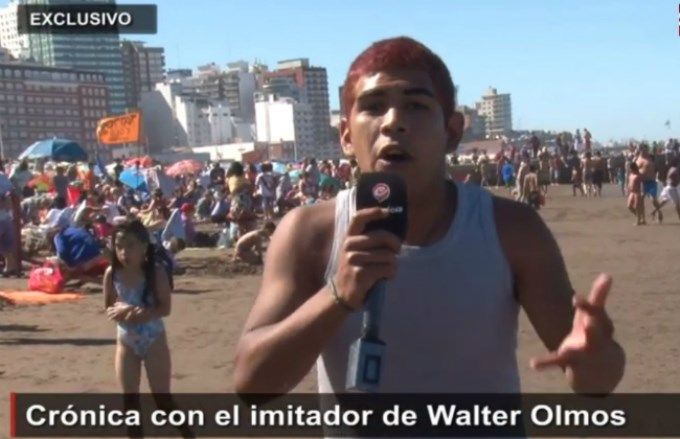 Crónica está en "La Feliz" y aprovechando su pasada por la Bristol, uno de los balnearios más concurridos, encontró a un joven cantante que simula ser Walter Olmos, popular cantante catamarqueño fallecido que alcanzó la fama gracias al apoyo del cuartetero Rodrigo Bueno. Fuente: Diario Crónica.