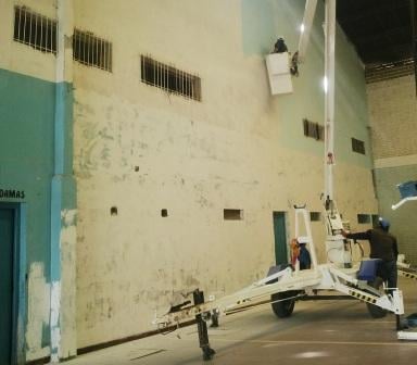 el gimnasio, para lo cual se requirió de una grúa del área alumbrado público a
