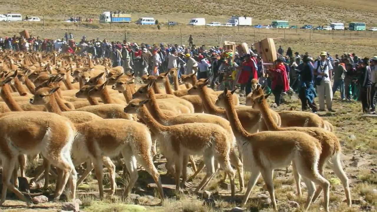 formando un cordón humano hasta lograr encerrar a las vicuñas en una zona con