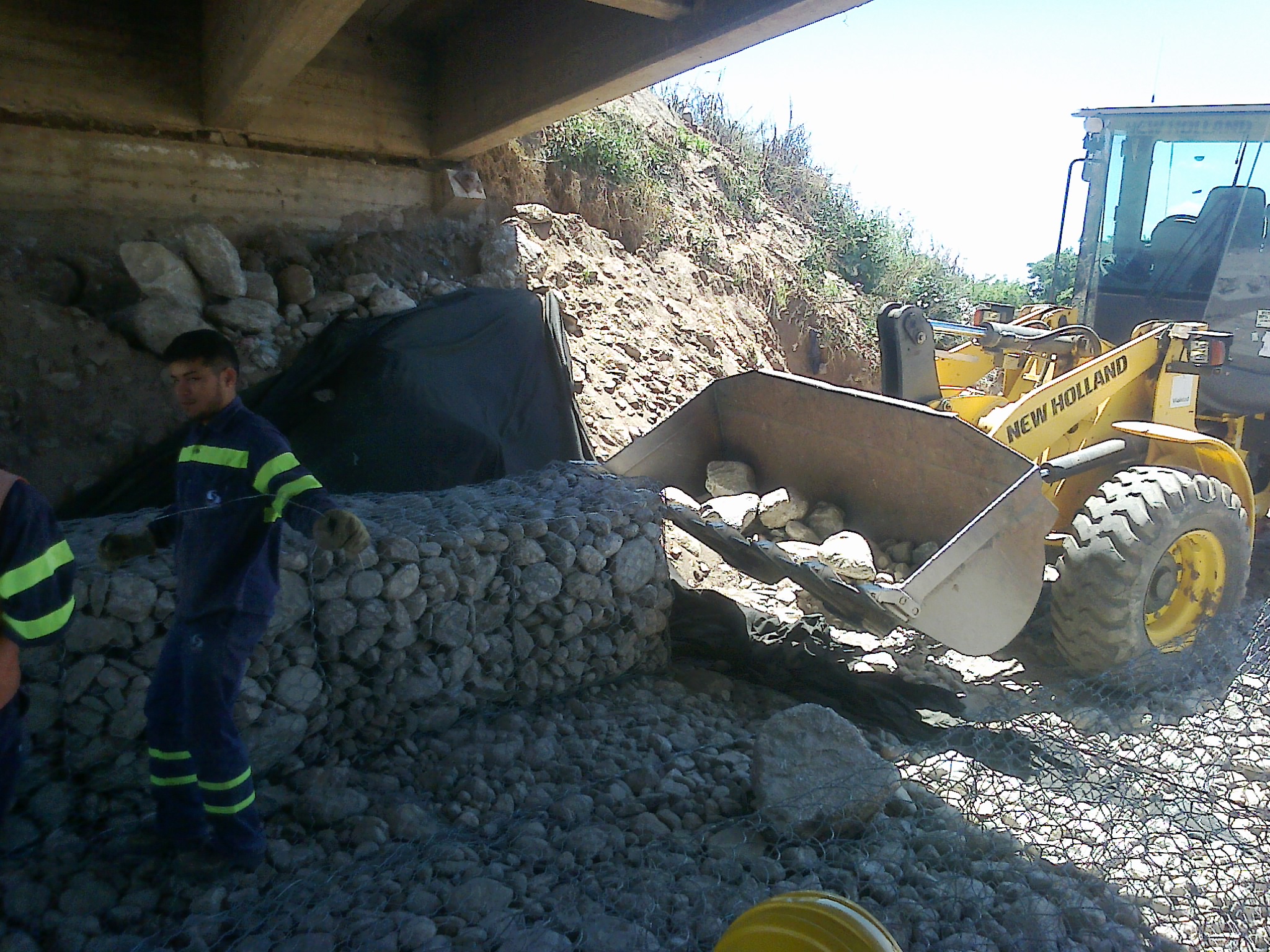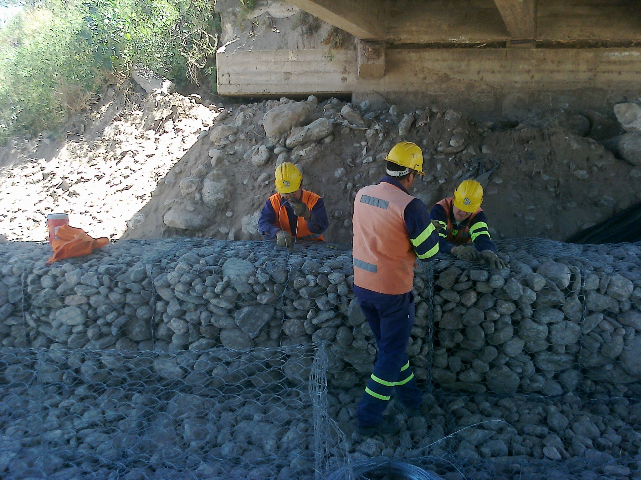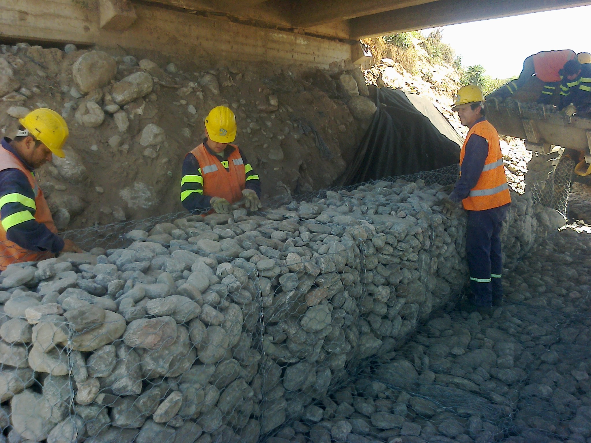 arrojan en el lugar. También se construyen gaviones y colchonetas de piedra