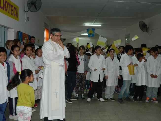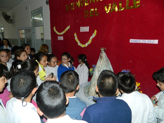 En este marco, la Madre del Valle llegó en brazos del Pbro. José Antonio Díaz, Rector del Santuario Mariano, a la Escuela Ramón S. Castillo de La Chacarita, donde fue recibida por docentes y alumnos con aplausos y banderas en alto. La Directora del establecimiento educativo, Prof. Zulma González, dirigió unas palabras de agradecimiento por la posibilidad de tan especial visita para la escuela.