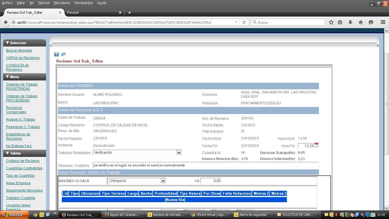 El agua producida en la zona de Pirquitas, controlada por el laboratorio de la empresa y de la mejor calidad, abastece a la totalidad de los departamentos Fray Mamerto Esquiú, Valle Viejo y la zona Noreste de la Capital. Lugares que no han tenido ningún problema con la calidad del agua”.