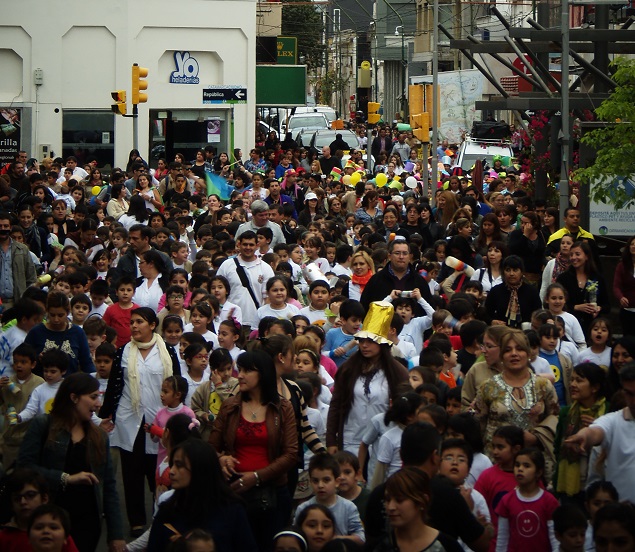 Por la tarde la murga "Chimichurri” reapareció para acompañar a los más pequeños del Colegio que salieron junto a padres, docentes y no docentes, a caminar en tono festivo por las calles. Aunque el cielo estaba gris, los colores de los pequeños realzaron el paisaje.