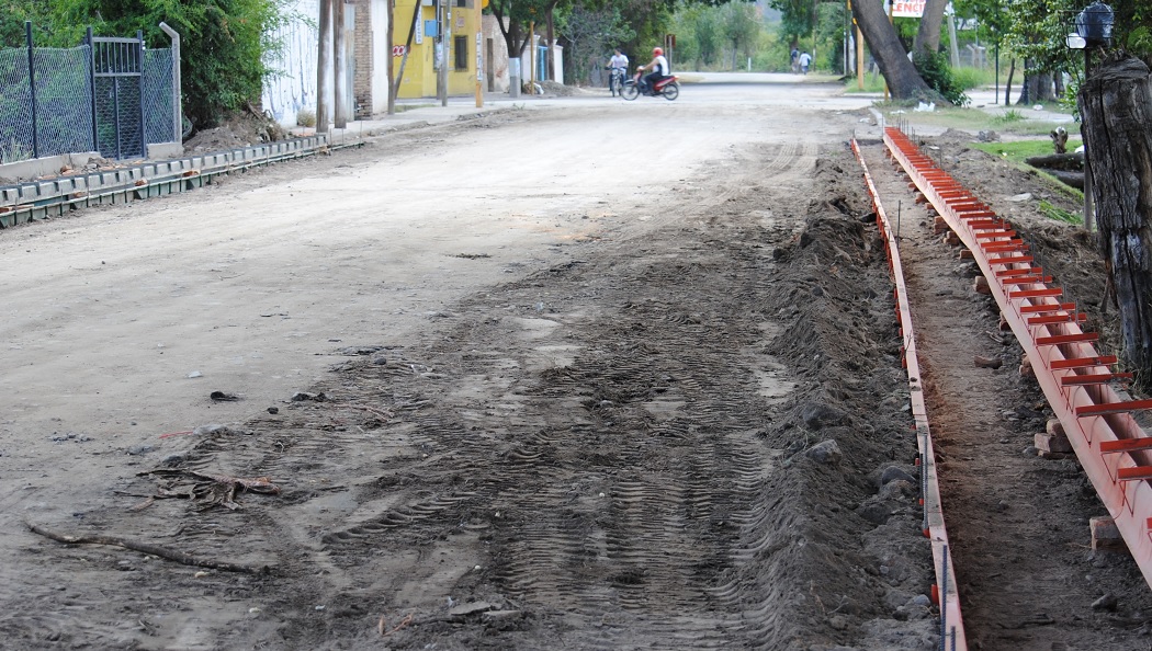 Sin embargo, a partir del martes, obreros municipales de la Secretaría de Obras Públicas retomaron los trabajos; primer instalando los moldes y las estructuras metálicas para el tendido del cordodón-cuneta, los que una vez desplegados fueron llenados con la mezcla de cemento y arena correspondiente.