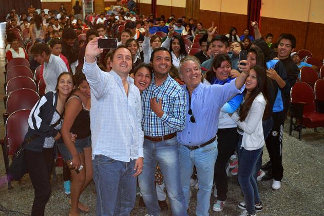 Mera llegó al Salón Cultural San Agustí, donde se desarrolló el evento, acompañado por el senador departamental, Gustavo Marcial, y el dirigente local Juan Pablo Sánchez. Allí disfrutaron del despliegue de talento de los jóvenes que prepararon coloridas coreografías e ingeniosas obras de teatro, para la clausura del Eje Cultural, último de las Olimpiadas 2015.