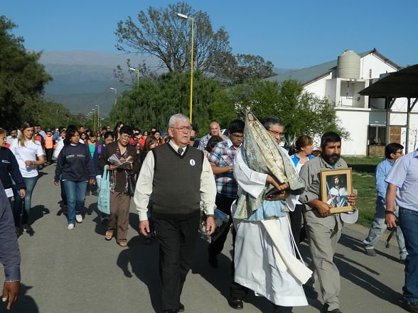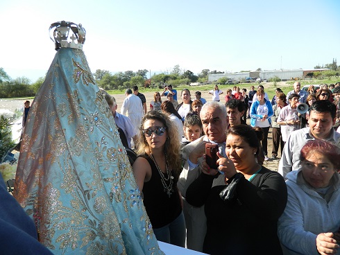 A las 8 arribó el Rector de la Catedral Basílica, Pbro. José Antonio Díaz, con la imagen de la Virgen mientras la Banda de Música de la Policía de la Provincia acompañaba con sus acordes el ingreso en el amplio predio del antiguo Regimiento, y resonaban bombas de estruendo anunciando a todos la llegada de la Imagen Peregrina.