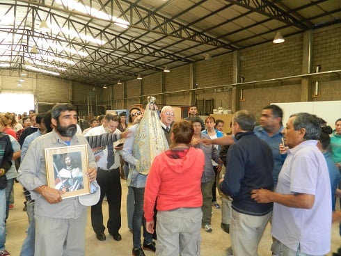 En un recorrido que duró más de dos horas, llegó a la gran mayoría de las oficinas de distintas áreas que funcionan en el lugar. En la entrada de cada pabellón la aguardaban con un altar, engalanado con flores, velas y ofrendas recolectadas y puestas a sus pies.
