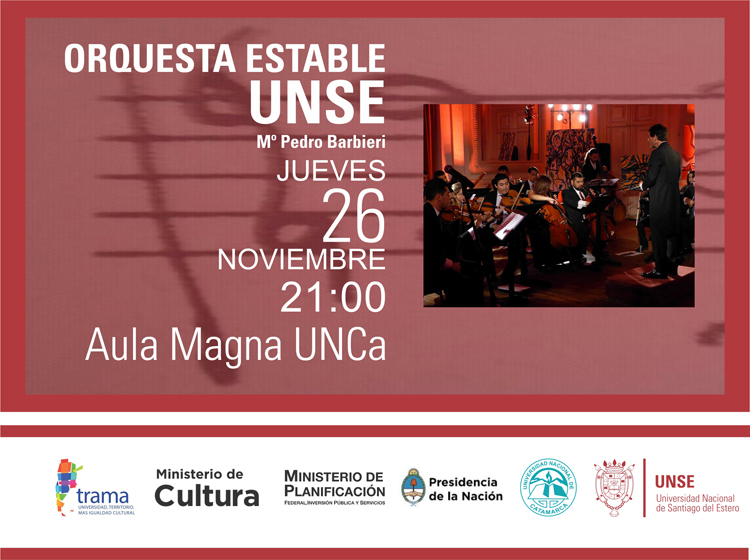 Esta noche, a las 21 horas, en el Aula Magna de la UNCA se realizará la presentación de la Orquesta Estable de la Universidad Nacional de Santiago del Estero (UNSE).
