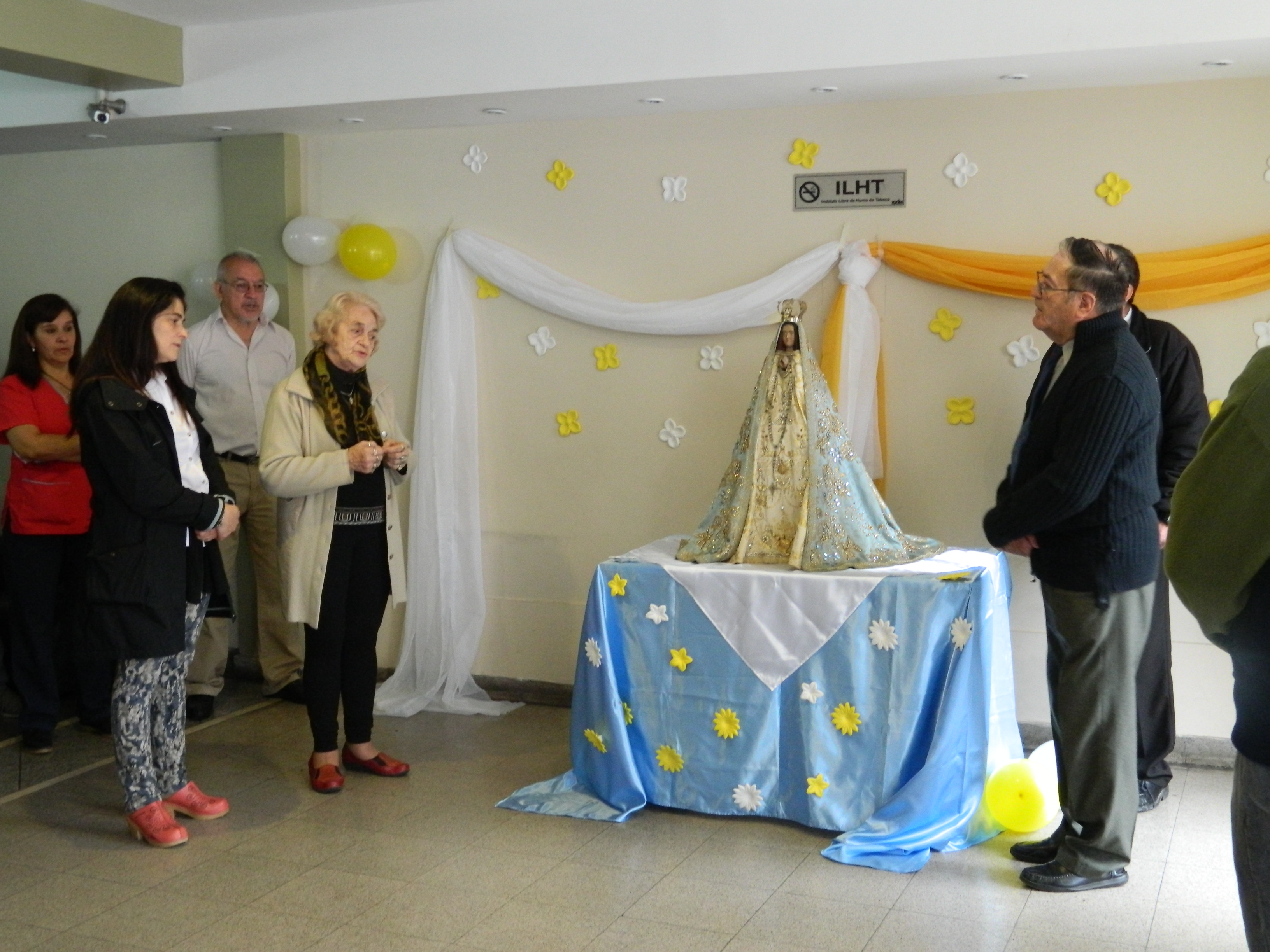 la ferviente oración en el hall de entrada de la institución, donde se dispuso