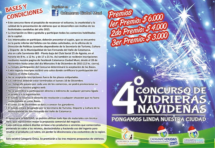 Para promocionar cada negocio, un fotógrafo del municipio de la Capital, tomará imágenes de cada vidriera y luego serán subidas al Facebook "Catamarca Ciudad Muni” para que los vecinos puedan votar de manera on line y decidan el tercer puesto del concurso.