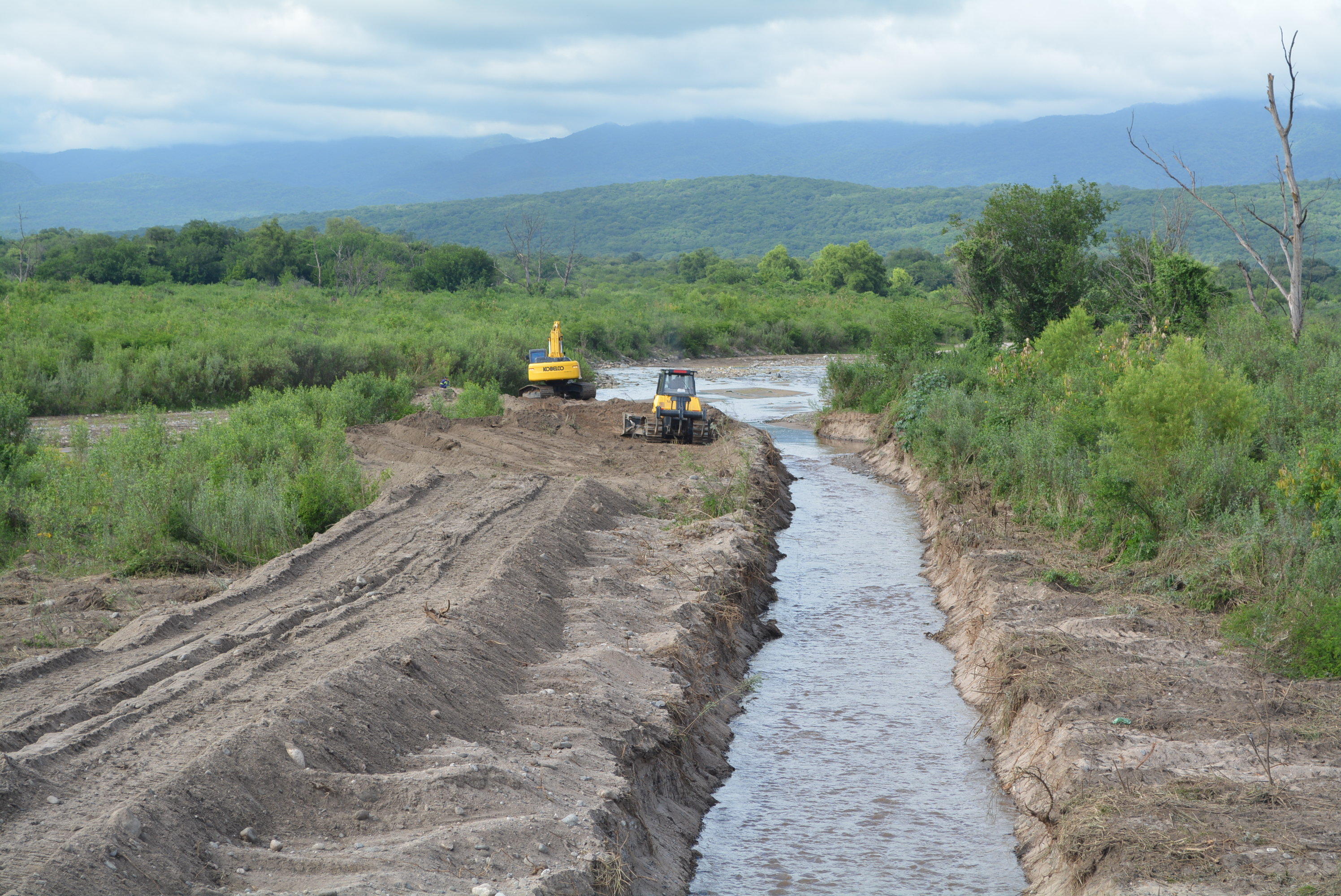 desmalezado del cauce, la construcción de un canal central y de espaldones para