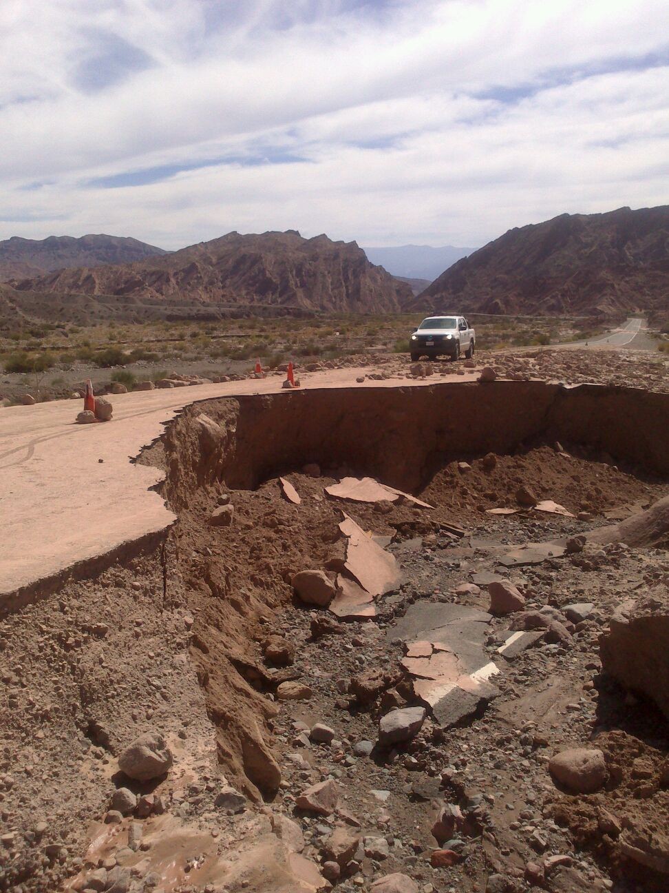 Un alud de agua y piedras colmató una alcantarilla y arrasó