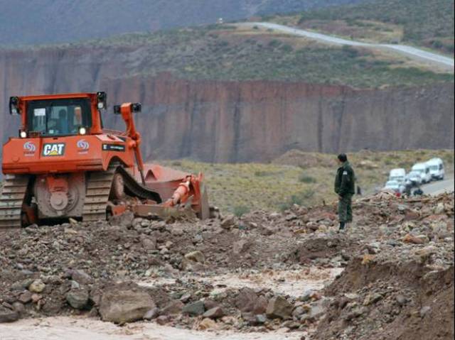 vehículos, como consecuencia de los aludes de piedra y barro sobre la ruta a la