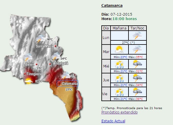 El Servicio Meteorológico Nacional prevé para los próximos días en el Valle Central catamarqueño, días de mucho calor y abundante precipitaciones.