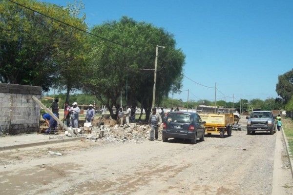 Una buena cantidad de obreros trabaja para levantar los casi 10 metros de pared derribados por el fuerte temporal, con el objetivo de terminar cuanto antes dado que las actividades inician este jueves. Fuente Lider Noticias de Recreo.