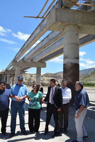 La mandataria provincial y su comitiva fueron recibidas en el puente sobre el río Villa Vil, de importante avance –más del 75%-, por el jefe del 11º Distrito y el representante técnico de la UTE contratista que ejecuta la obra, ingeniero Raúl Escobar. Patria explicó a la Dra. Corpacci que esa superestructura ya cuenta con la totalidad de los tableros y que se está terminando el hormigonado de las veredas peatonales.