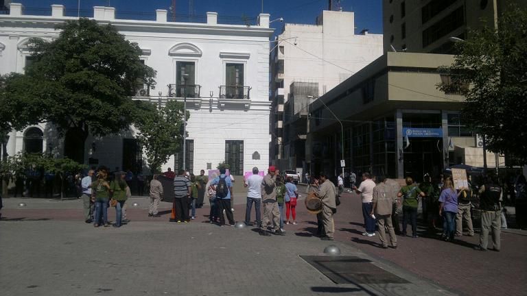 La protesta se llevó a cabo en el hallo de ingreso del Ministerio, y advirtieron que no depondrán su postura hasta lograr el cumplimiento de la promesa oficial.