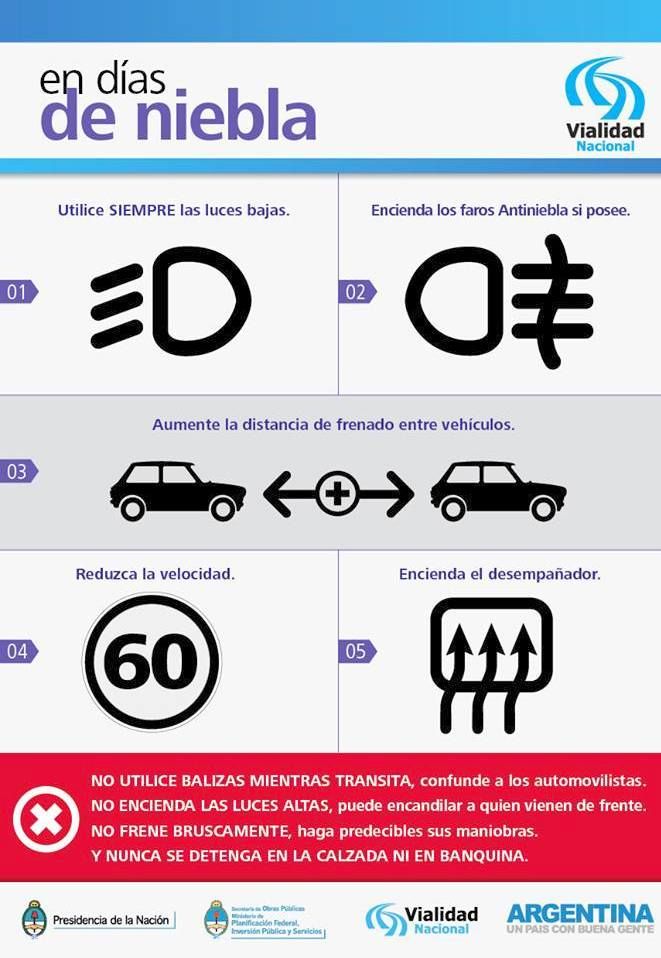 Importante:Precaución al conducir sobre calzada húmeda. Atención a la presencia de animales sueltos en la ruta en varios sectores. Se recomienda a los usuarios respetar las velocidades máximas, especialmente en travesías urbanas, el uso de cinturón de seguridad y casco protector en el caso de motociclistas. Encender luces bajas obligatorias.