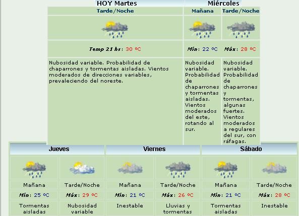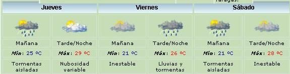 2 fotos 2 fotos martes, 24 de febrero de 2015 19:44 martes, 24 de febrero de 2015 19:44 Se anticipan, chaparrones y tormentas, algunas de ellas fuertes. También vientos moderados a regulares del sur, con ráfagas.