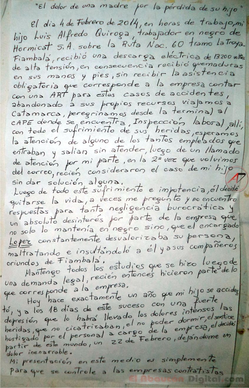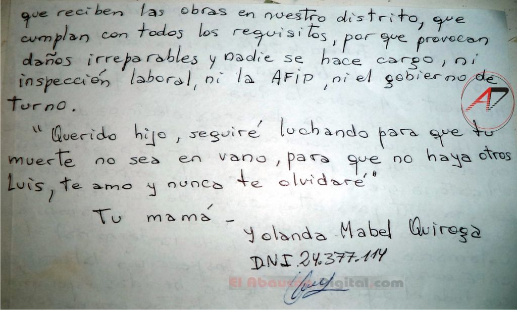 vano, para que no haya otros Luis. Te amo y nunca te olvidaré”. Tu mamá…