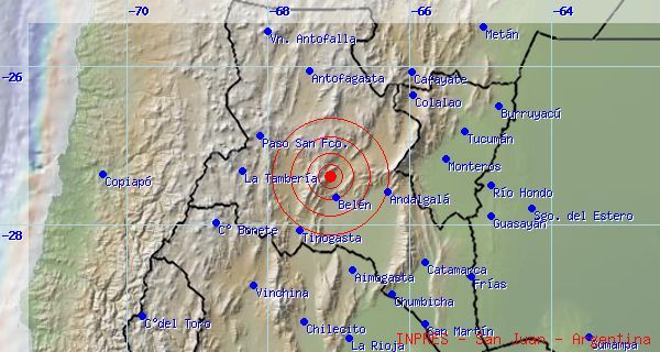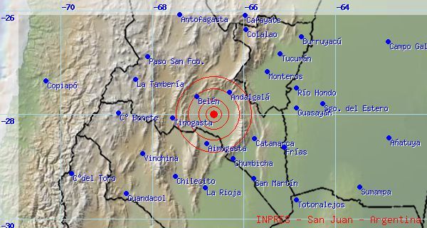 epicentro en el norte del departamento Belén, con una profundidad de 168 km. y