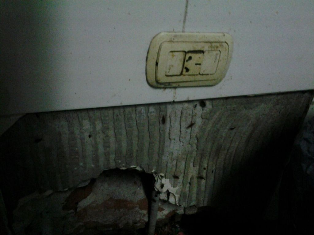 instalación eléctrica por fuera de la normativa y con cableado suelto, carencia