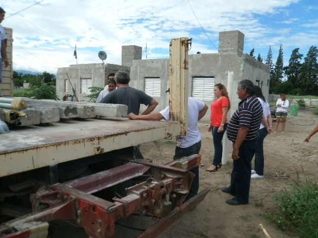 En días pasados se hizo entrega de una nueva partida de materiales para aquellos que habían avanzado en la etapa prevista de la construcción de sus viviendas. Además se hizo entrega, ya que algunas casas se encuentran bastante avanzadas casi a punto de terminarse, de los pilares completos para la bajada de electricidad.