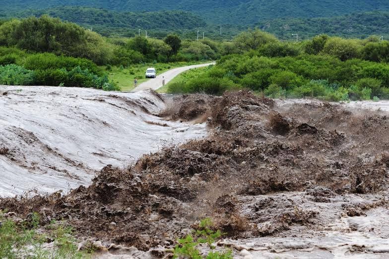 Sucede que el canal de riego que les llevaba agua, no podrá repararse hasta que baje considerablemente el caudal del río, pues la tubería pasaba por debajo del curso de agua, a unos 200 metros aproximadamente, hacia el sur del badén, que también fue arrasado por la crecida.