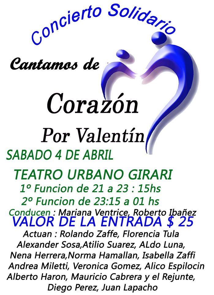 Valentín”. La cita será el sábado 4 de abril, en dos funciones, a las 21 y a
