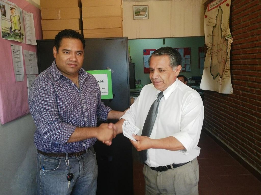 Finalmente en la mañana del viernes el representante de Minera Alumbrera se llegó hasta el Nodo de supervisión para hacer entrega de los vales de gas al profesor Ampuero para que sean entregados a cada director de los 34 establecimientos que hay en el medio. Cada escuela podrá retirar 20 kilos de gas durante 10 meses.