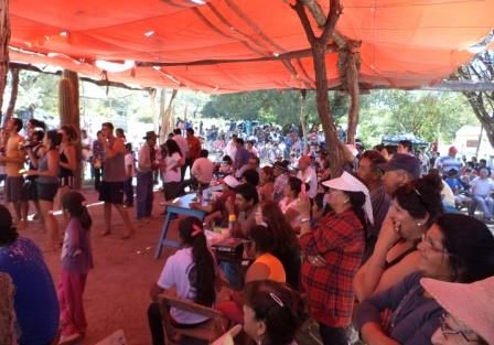 les acercaron los frutos y presentes tallados en madera de cardón para que se
