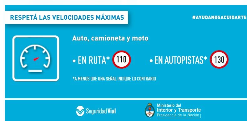 Importante:Atención a la presencia de animales sueltos en la ruta en varios sectores. Se recomienda a los usuarios respetar las velocidades máximas, especialmente en travesías urbanas, el uso de cinturón de seguridad y casco protector en el caso de motociclistas. Encender luces bajas obligatorias.